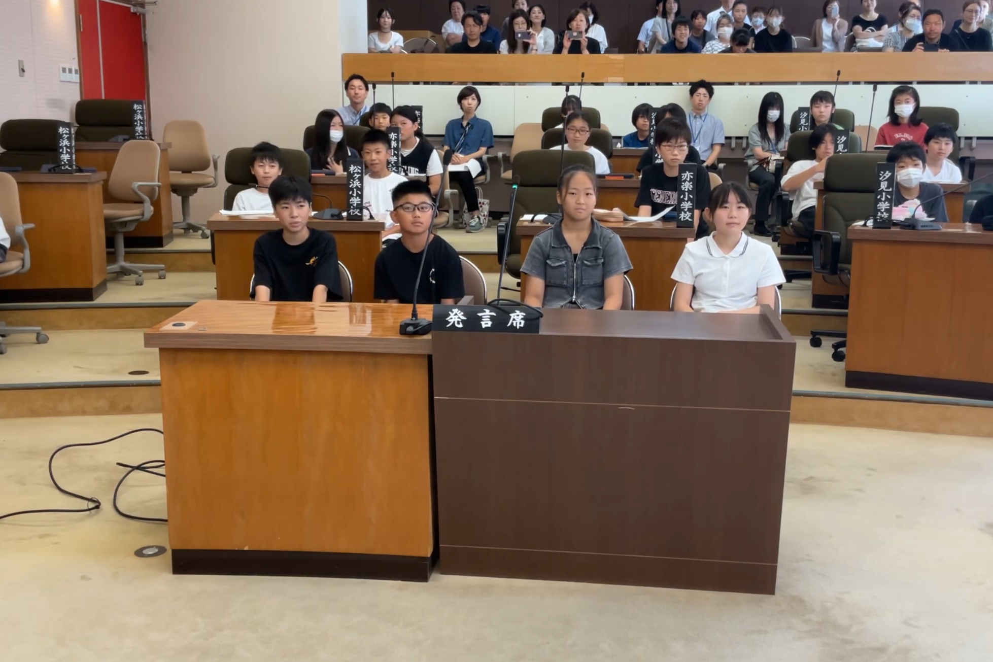 令和7年7月29日(火)、議場にて町内5校の児童生徒の代表が子ども議員として、日頃疑問に思っていること、希望や意見、そして七ヶ浜の町づくりに関して考えていることを発表しました。