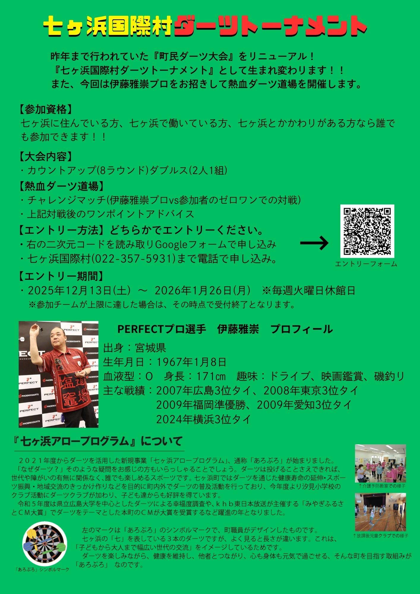 第1回七ヶ浜国際村ダーツトーナメント開催について [掲載日:2025年12月11日]