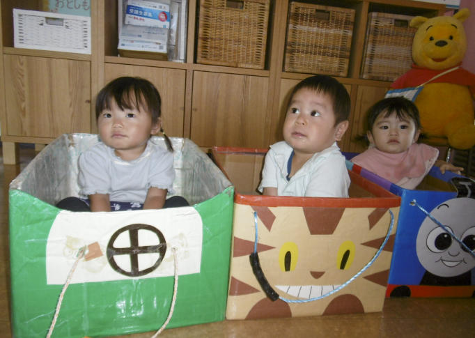 - ダンボールカーに乗り