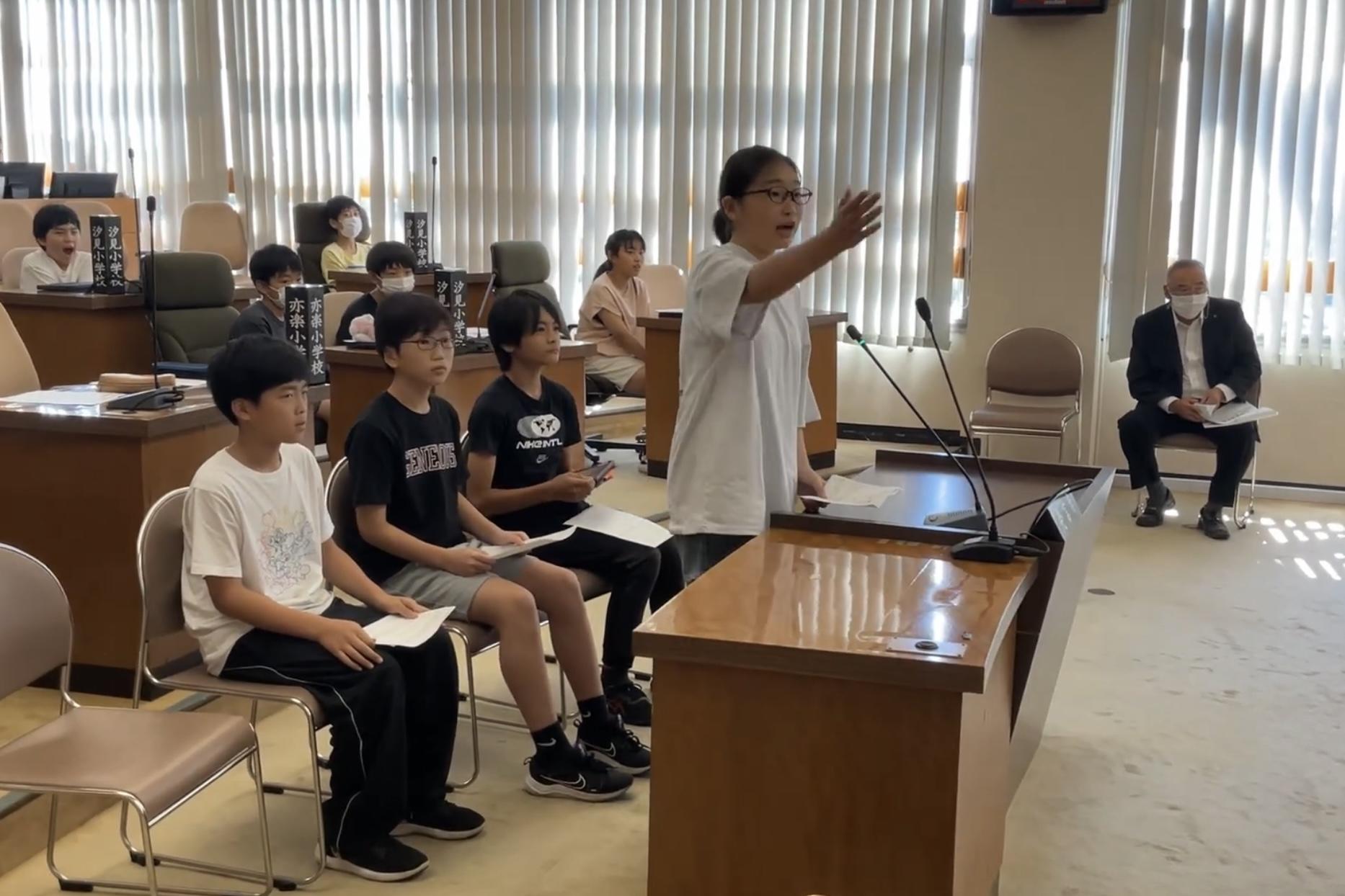 子ども議会の一番の目的は主権者教育です。子どもが声をあげられる環境づくりや、子どもの意見を地域に反映させる環境づくり、防災・減災教育へつなげ、さらに町への誇りの気付きにつなげることが目的です。