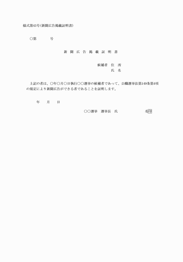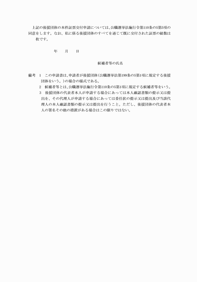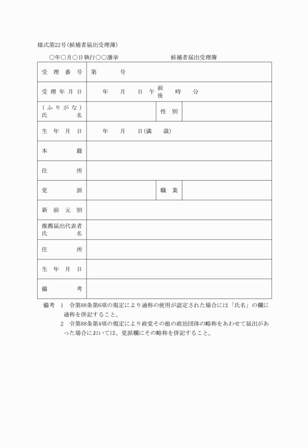 (平16選管告示6・一部改正、平18選管告示20・旧様式第1号繰下)
