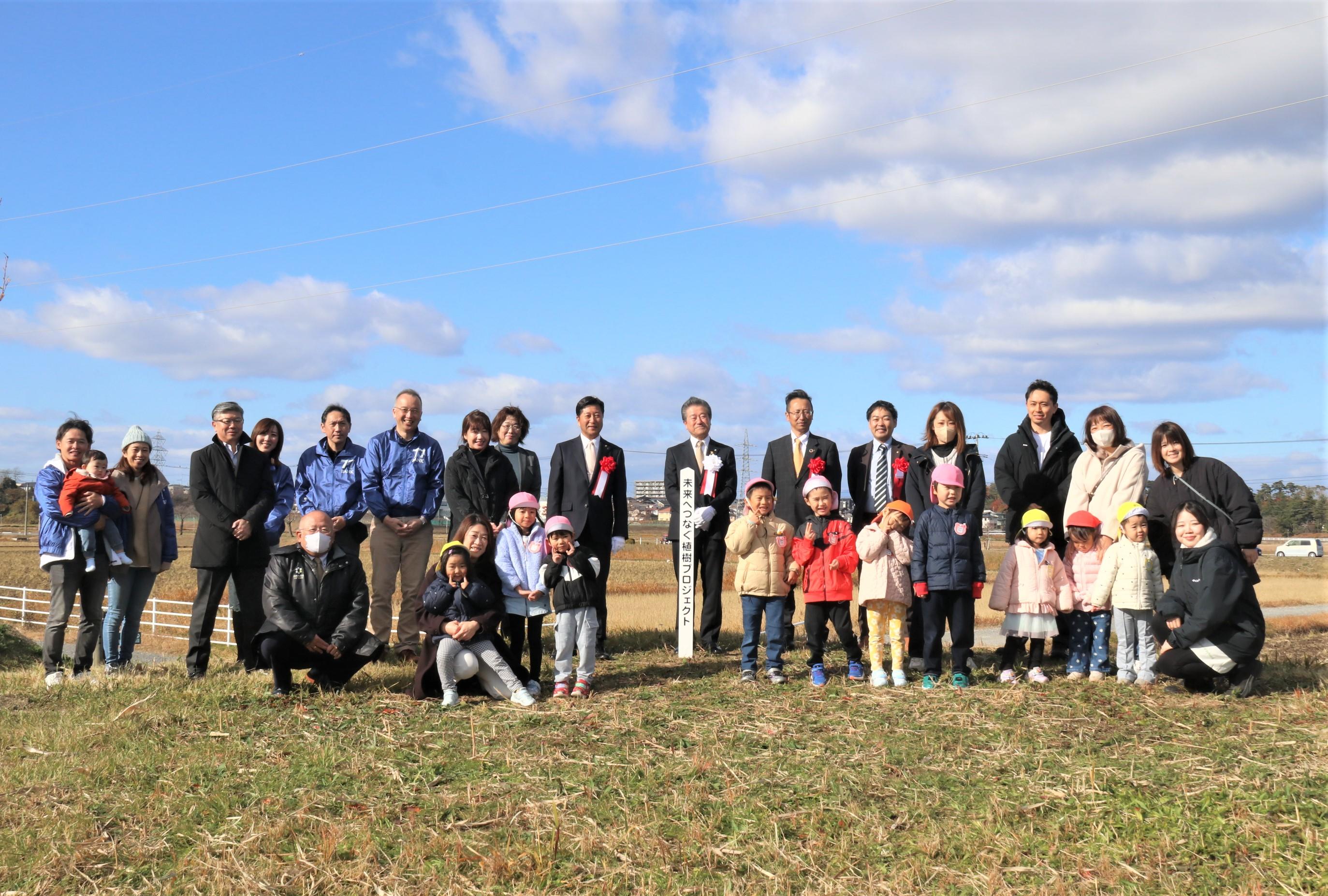 令和7年11月29日に東北ドック鉄工株式会社と株式会社七十七銀行塩釜支店兼北浜支店から、ソメイヨシノの苗木を寄贈いただき、海遊ほのぼの農園で「未来へつなぐ植樹プロジェクト」桜苗木寄贈式と植樹式が行われました。