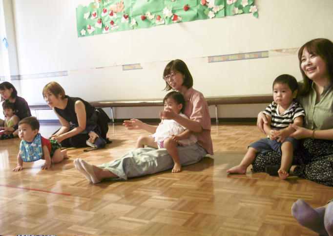 - ママのお膝に座り、