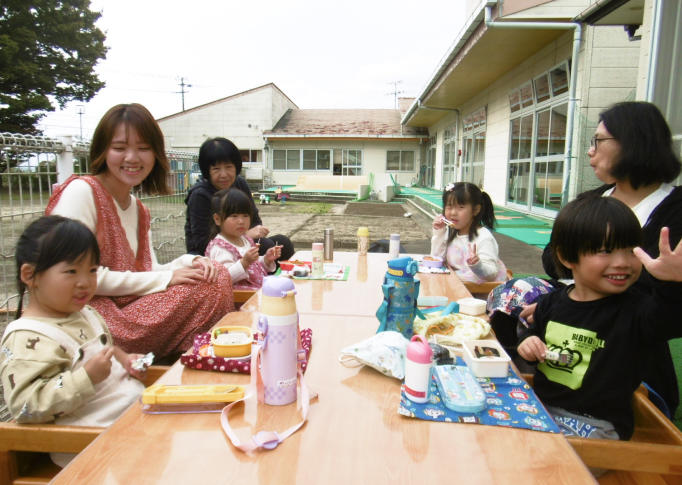 遊びにきた子ども達が仲良くランチタイム。