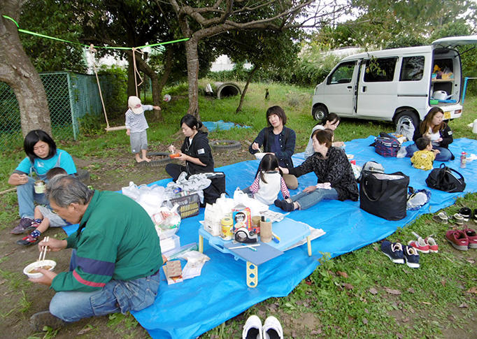 - 生憎の天気で、室内で芋煮汁の会食となりました。ボランティアさん達の愛情たっぷりの芋煮汁は、絶品でした。