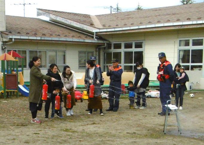 - 11組の親子が参加してくれ、消火器の使い方など学びました。