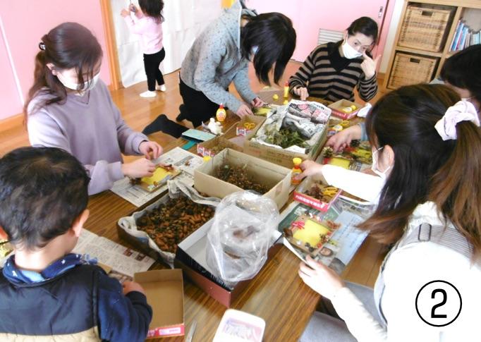 ② 秋に拾った木の実を使って、フォトフレームを作りました。子育てに追われている中で、ママ達は自分の時間を満喫できたひと時になったようです。次は何を作ろうかな。