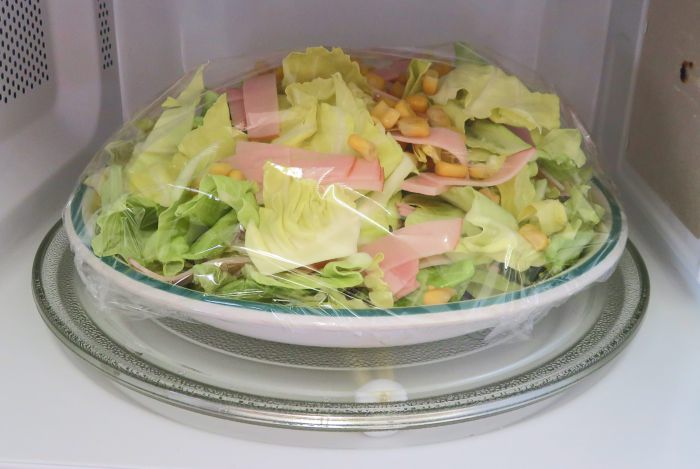 - 耐熱容器に1とコーンを入れ、ラップをふんわりかけて電子レンジ600Wで2分加熱する。